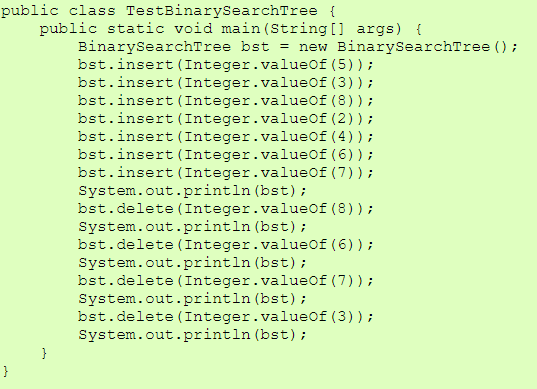 BinarySearchTreeクラスを作成し、 探索、挿入、削除に関してそれぞれ メソッドを用意すると、次のようになる。