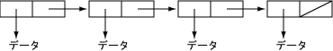 しかし、教科書では、上記の構造を「連結リスト」と呼び、 「リスト」という語を「データを線形に並べたもの」とか「一覧表」 などという意味で使用しているようです。混乱しないように注意して下さい。