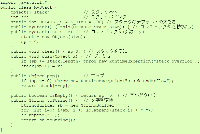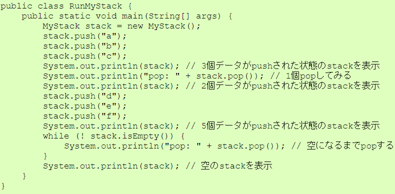 | RunMyStack.javaの実行例 |