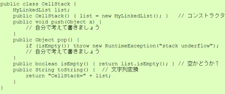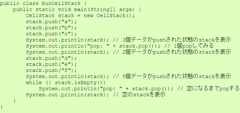Cellクラスをつかってスタックを実現したのが CellStackクラスです。