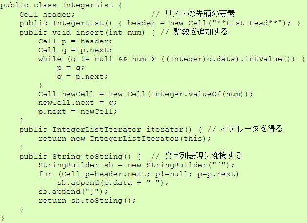 ここではその名前を IntegerList.java と変更して掲載しています。