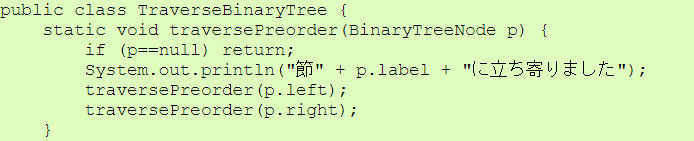 - 行きがけ順 ... ノード→左部分木→右部分木