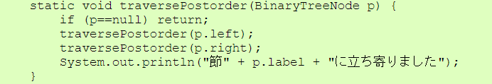 - 帰りがけ順 ... 左部分木→右部分木→ノード