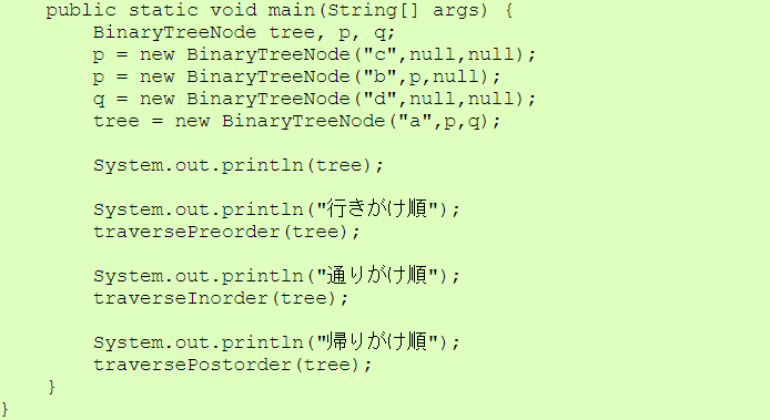 - 通りがけ順 ... 左部分木→ノード→右部分木
