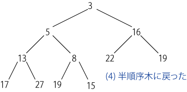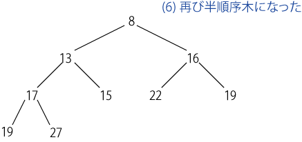 ヒープを平衡木を利用して実現することも可能ですが、 それだと無駄が多いので通常は半順序木を使って実装します。