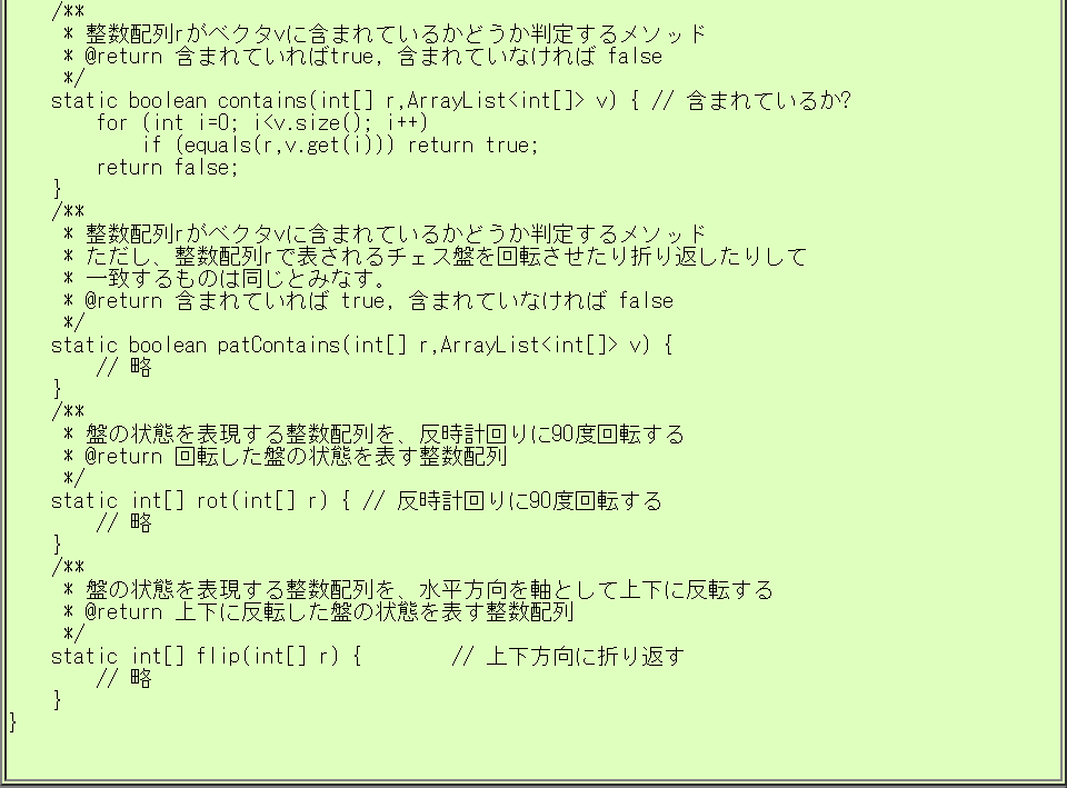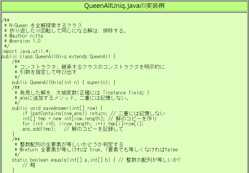 回転、折り返しで一致する解を別物として扱わない(二重に数えない) ように変更したプログラム QueenAllUniq.java を、 QueenAllクラスをextendsして作成して下さい。
