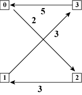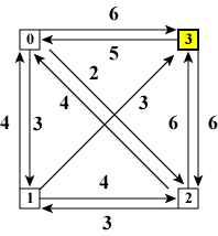 4 11 0 0 1 3.0 1 0 4.0 0 2 2.0 2 0 4.0 0 3 6.0 3 0 5.0 1 2 4.0 2 1 3.0 1 3 3.0 2 3 6.0 3 2 6.0 |