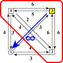 図6(c)では、ノード3からノード1に向かうエッジが存在しないのでコスト c31 は無限大となっています。