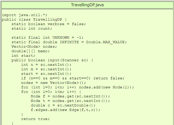 を処理した結果は以下の通りです。| TravellingDP.javaの実行例 |