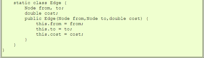 javaのコードを示します。 コストを実数とすると、記録用のメモリは実数の2次元配列で表現できます (1次元配列でも表現可能ですが、ここでは簡単のために2次元配列を使っています)。
