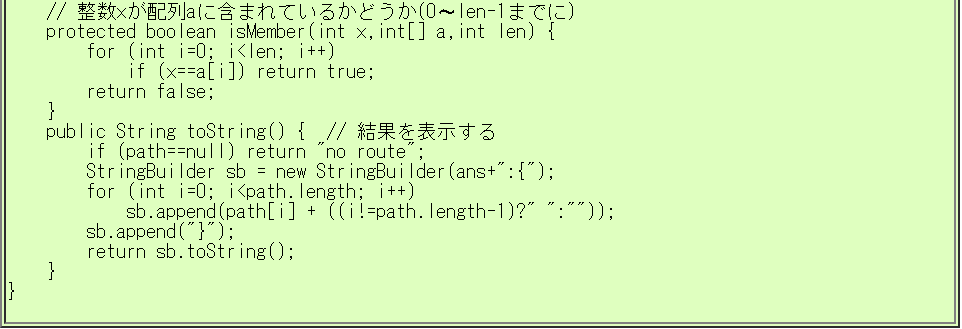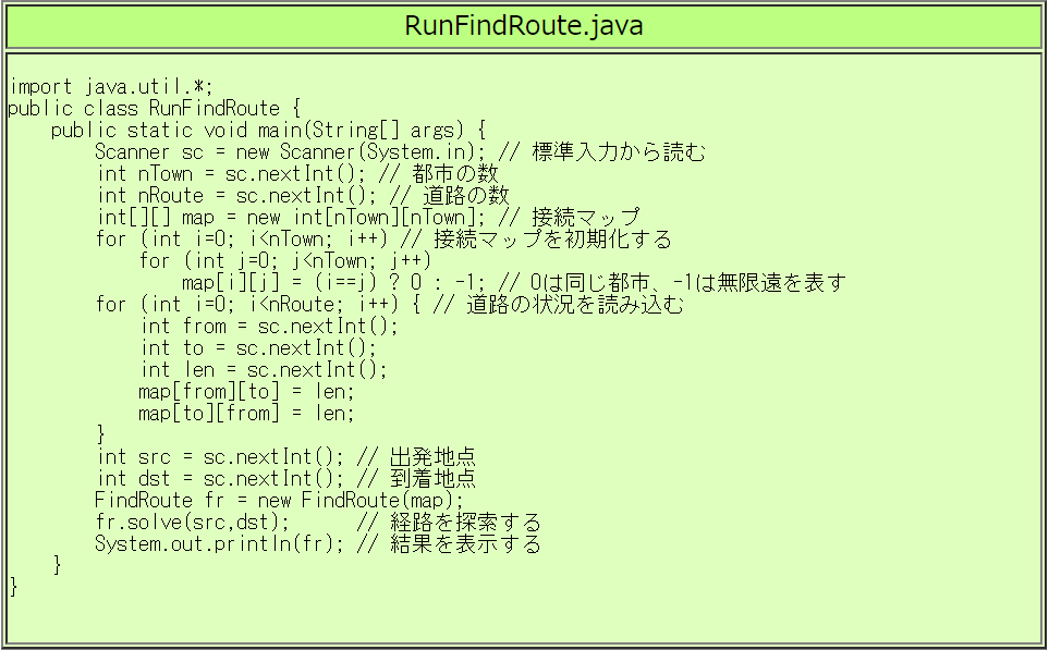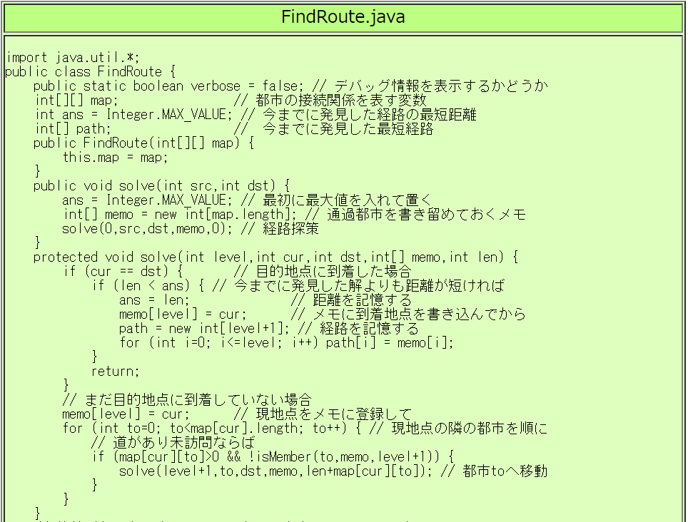 | コメント欄: | routedata02.txtを入力としたとき、FindRouteクラス中の5引数のsolveメソッドが何回呼び出されるか |