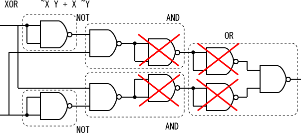 $G(X_{1},X_{2},...,X_{n}) = \bar{X_{1}} \bar{X_{2}} \cdots \overline{X_{n}} G(0,0,...,0)$となります。このように任意の論理回路が展開できることを展開定理とよび、 得られた式を加法標準形 (disjunctive canonical form) とよびます。