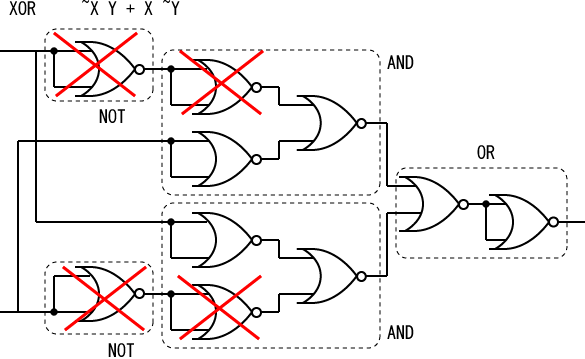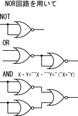 AND, OR 回路の入力を X1, X2 とし、 NOT回路の入力をX1とすると、出力は 次のような論理式で表わすことができます。