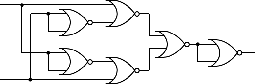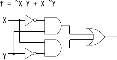 以下に示す真理値表を論理関数で表し、この論理関数を実現する回路を AND, OR, NOT回路を使用して設計してみましょう。 これを XOR (Exclusive OR, 排他的論理和)と言います。