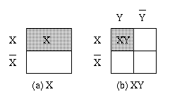 たとえば $X + (X \cdot Y) = X$ は上のバイチ図より明らかでしょう。