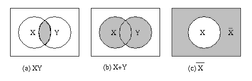 集合論では、ブール代数の関係はフェン図 (Venn diagram) で表現します。