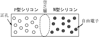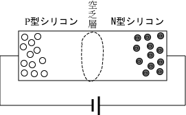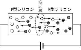 p型とn型領域が隣接した構造(接合面をpn接合という)をしています。