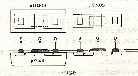 2種類があります。n型の基盤の上にp型とn型の両方のMOS回路を合成する場合は