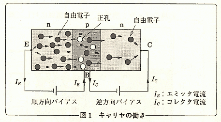 これに対して、普通のトランジスタは正孔と自由電子の両方をキャリアに