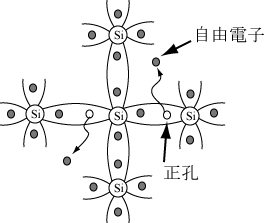 電界をかけると(熱的に励起された自由電子と正孔がキャリアとなって)