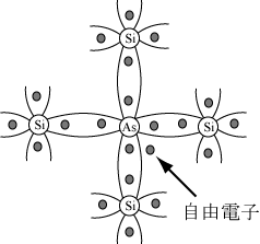 - n型半導体 --- 不純物として5価の元素 (たとえば As, ヒ素) を添加したもの。