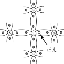 - p型半導体 --- 不純物として3価の元素 (たとえばIn, インジウム) を
