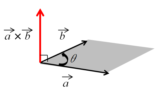 $\overrightarrow{v_1}$ が $\overrightarrow{v_2}$ の方向を向くように回転させたとき右ねじが進む方向 」