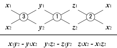 & = & x_1 y_1 z_2 - x_1 y_2 z_1 + x_2y_1z_1 - x_1y_1z_2 + x_1y_2z_1 - y_1x_2z_1 \\