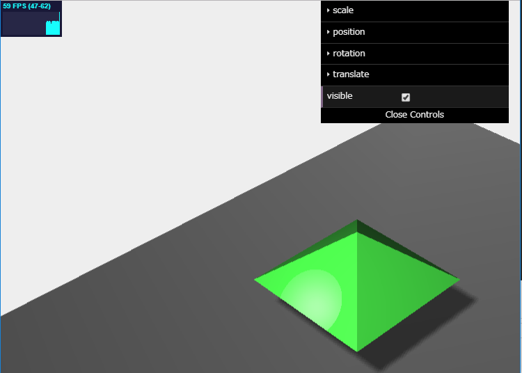 SpotLight は .target で3D Objectを指定するとその物体を照らすように方向を変える。 デフォルトでは原点を照らしている。 物体の近くから照らすことで、面を構成する点が頂点よりも明くなればよい。