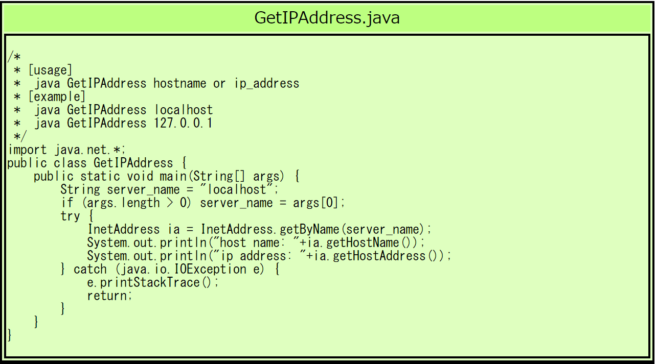 $ java GetIPAddress 182.22.28.252 ← IPアドレスを指定する