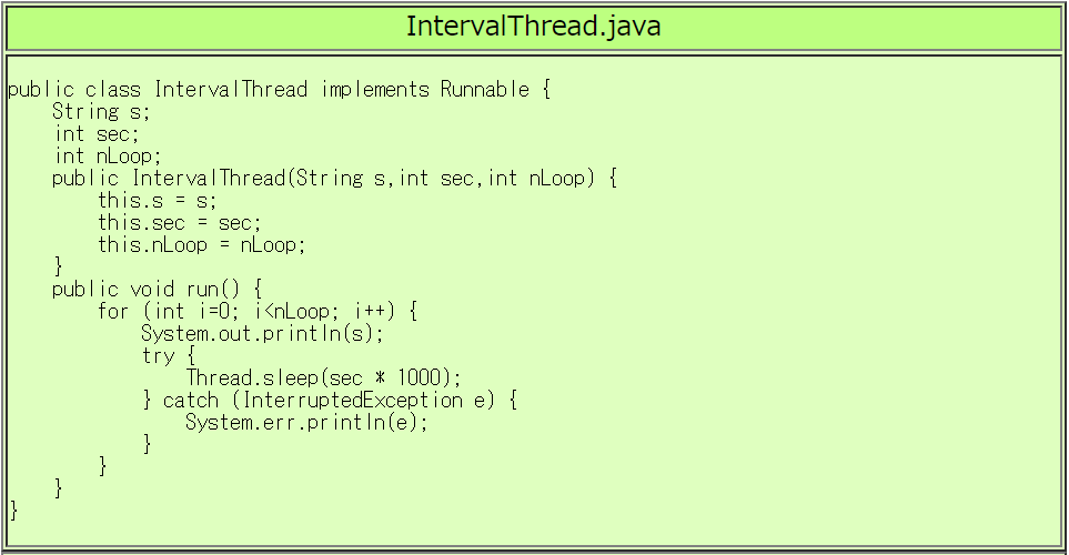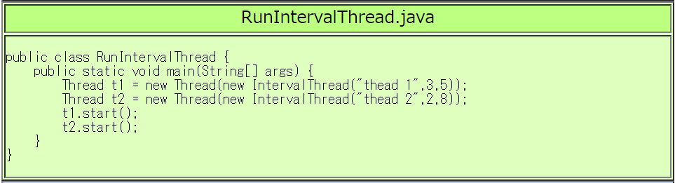 | RunIntervalThread.javaの実行例 |