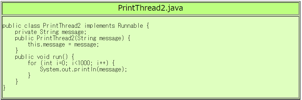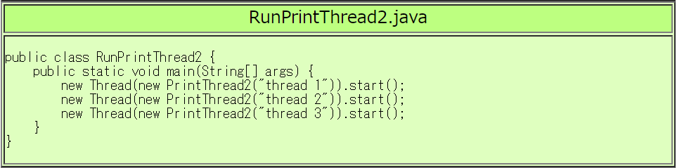 | RunPrintThread2.javaの実行例 |