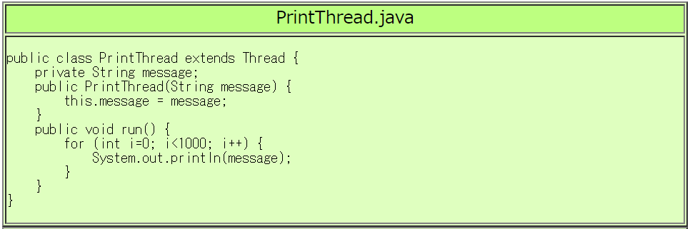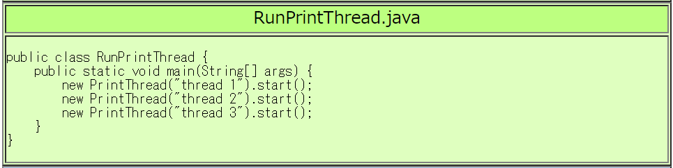 | RunPrintThread.javaの実行例 |