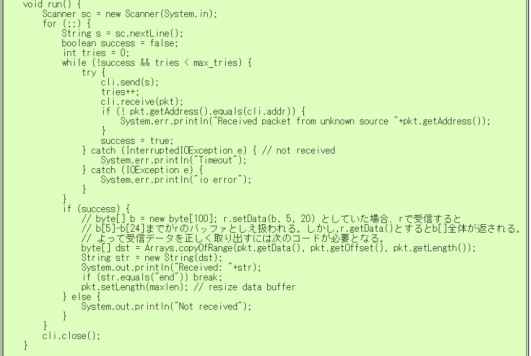 [注意] UDPサーバが文字列を受け取るためには、UDPクライアントに文字列を入力する時点でUDPサーバが起動している必要があります。