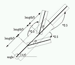 tree(level-1,x1,y1,newlength,angle-theta,theta,mg); // 左の枝