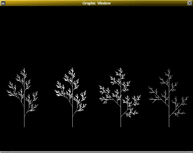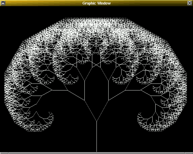 フラクタル構造を持つものの例として、地形や樹木の形などが有名です。 そこで、樹木の形を再帰的に定義して、グラフィックメソッドを用いて描いて みることにしましょう。