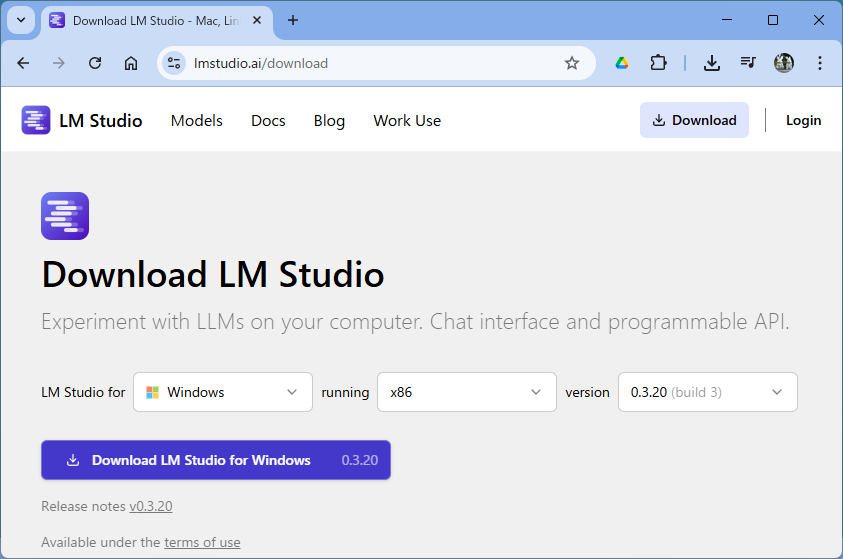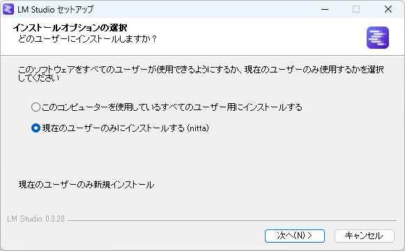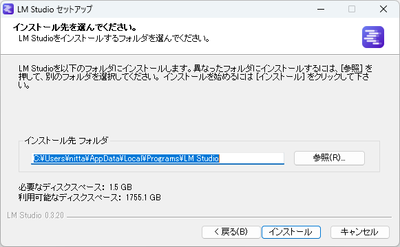 2. 2025.07.23 時点での最新バージョンは 0.3.20 (build3) 。 LM-Studio-0.3.20-3-x64.exe
