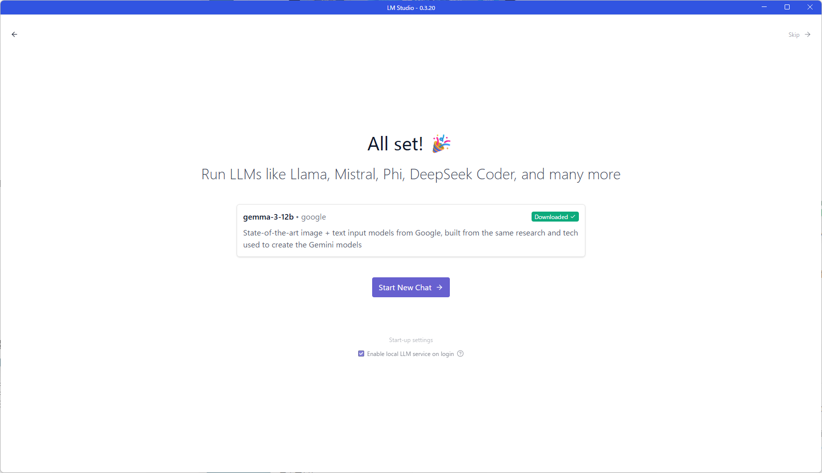 10. しばらく待つとダウンロードが終了するので、"Start New Chat" をクリックする。