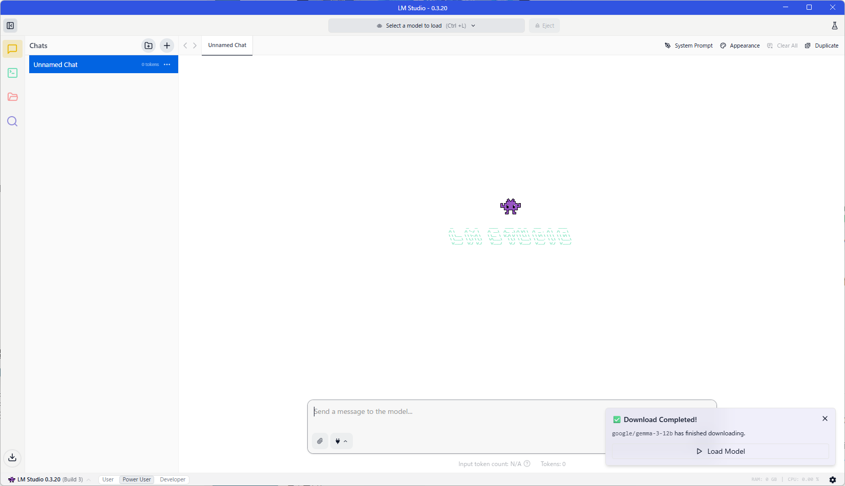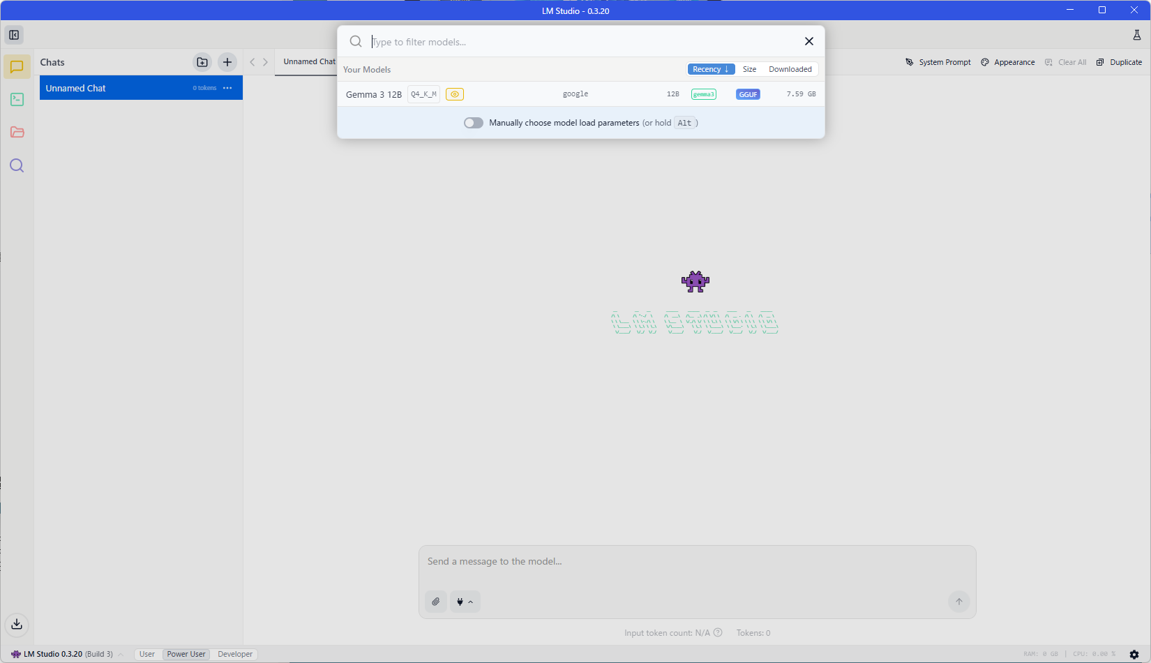 12. ウィンドウ上部に "Select a model to load (Ctl+L)" と表示されているので、モデルを選択する。