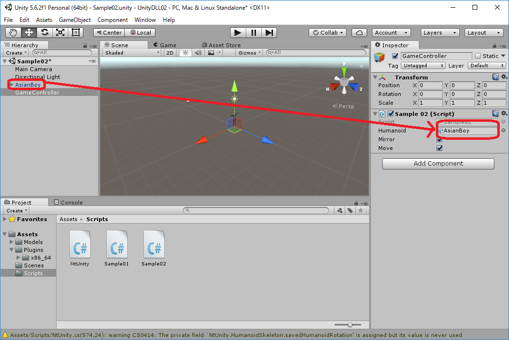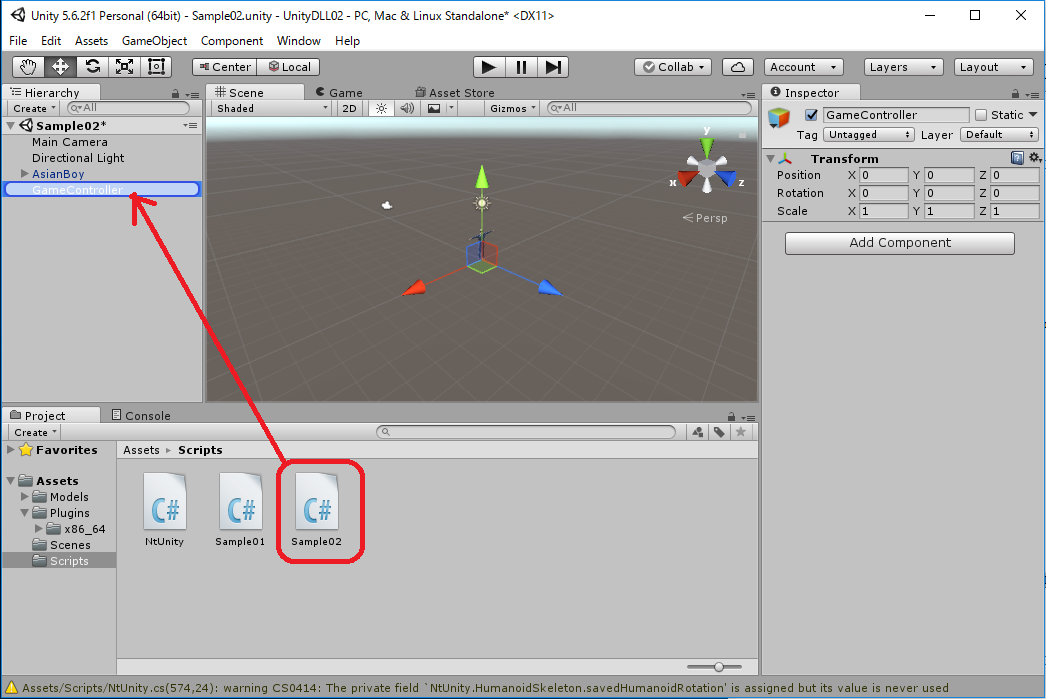 上記のzipファイルには必ずしも最新の "NtKinectDLL.dll" と "NtUnity.cs" が含まれていない場合があるので、 こちらから最新版をダウンロードして 差し替えてお使い下さい。