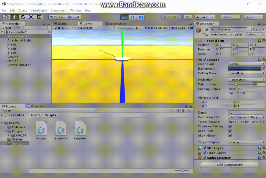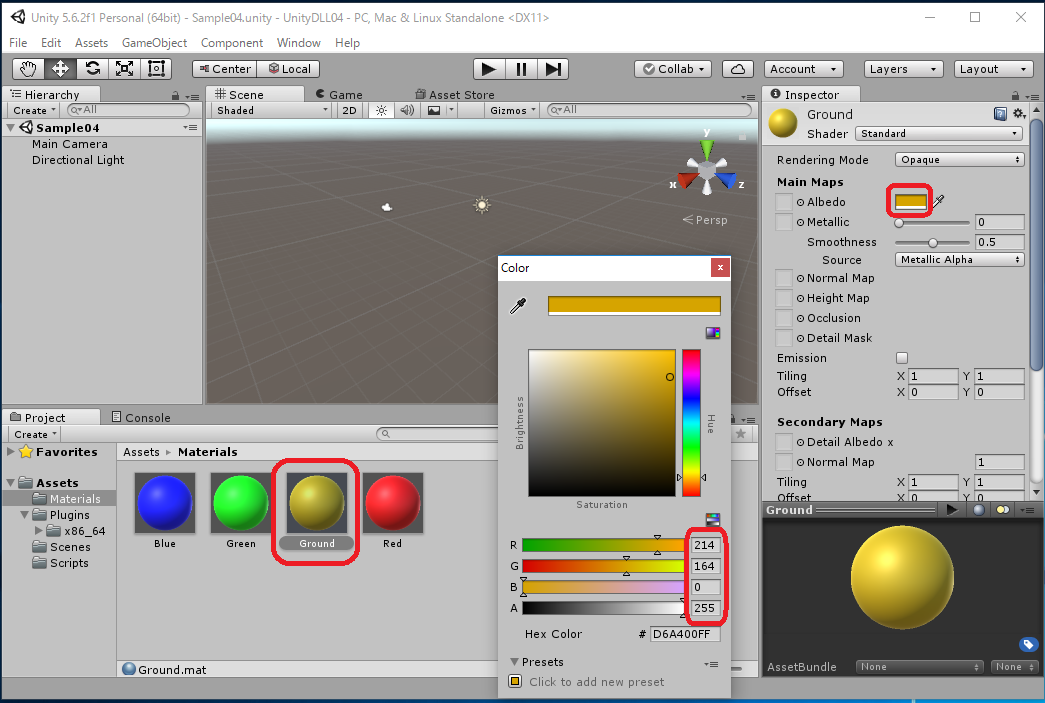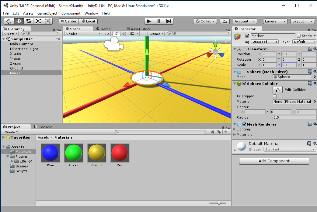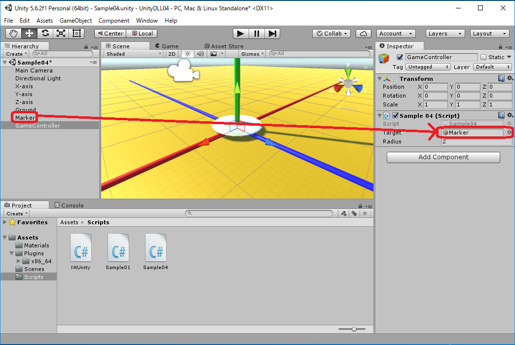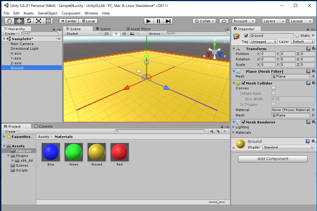 上部のメニューから「Assets」-> 「Create」 -> 「C# Script」 -> ファイル名は Sample04