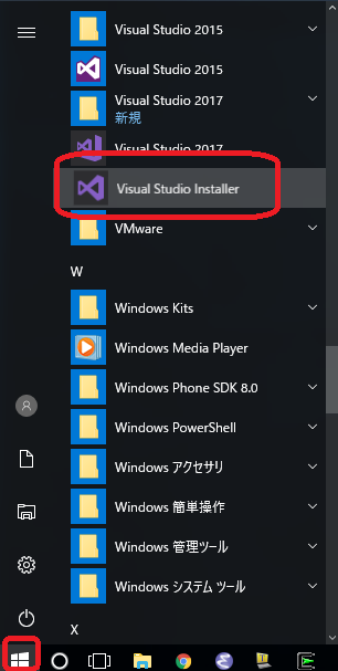 1. StartメニューからVisual Studio Installer を起動して下さい。