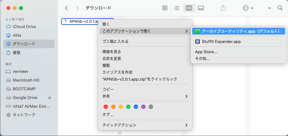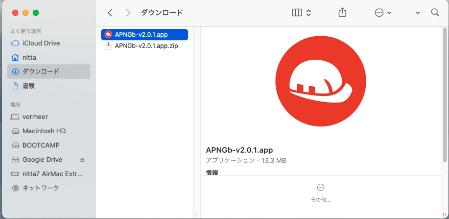 - 解凍すると APNGb-v2.0.1.app ファイルができる。