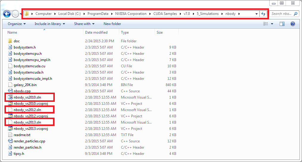 7. Open the nbody Visual Studio solution file for the version of Visual Studio you have installed.