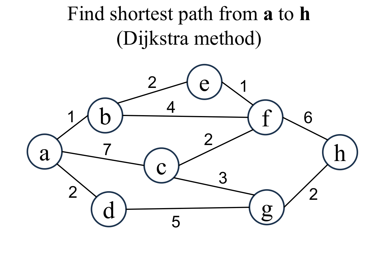 Let's find the shortest path from node a to node h. |