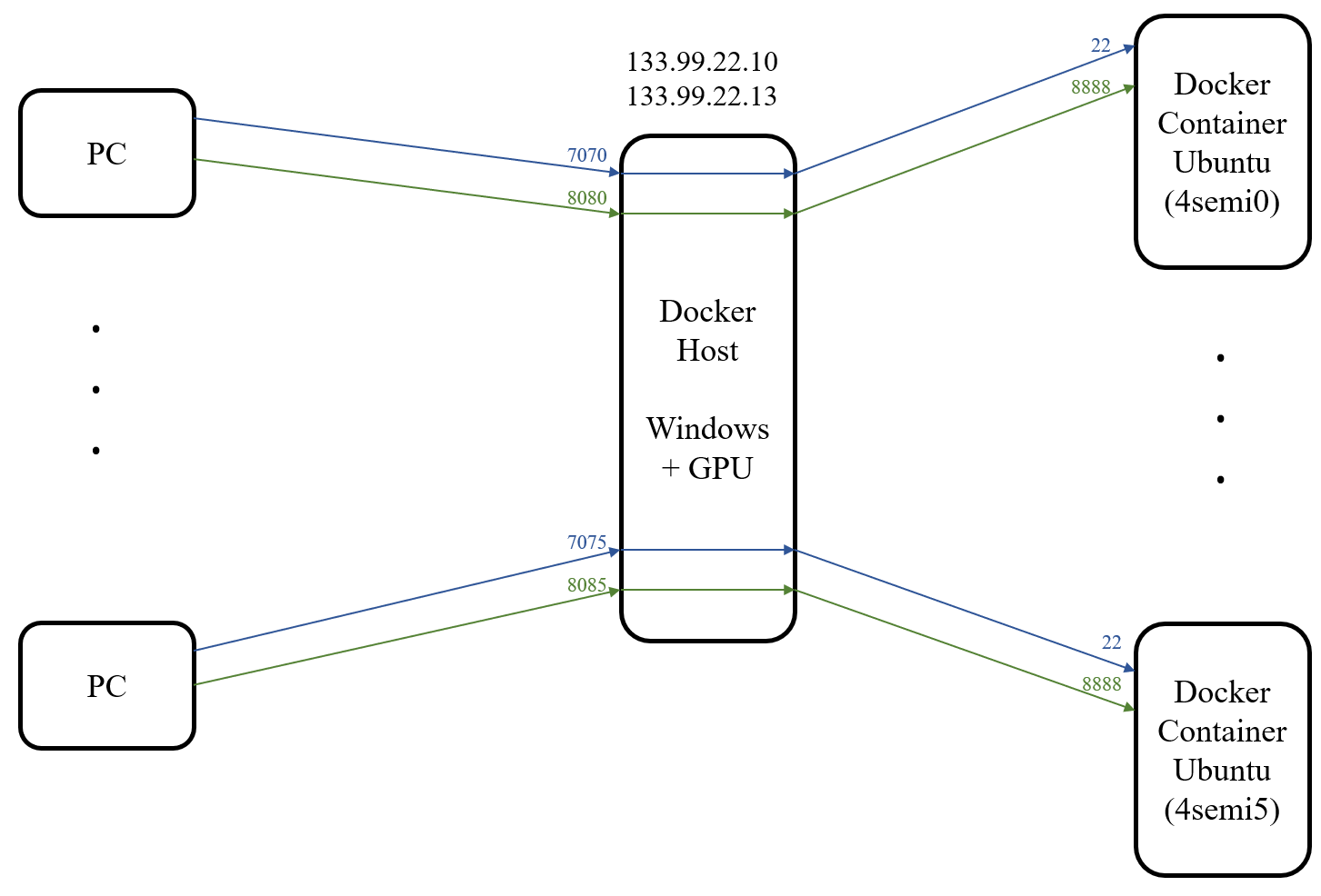 $ ssh root@133.99.22.13 -p 707x ← xは0-5の数字