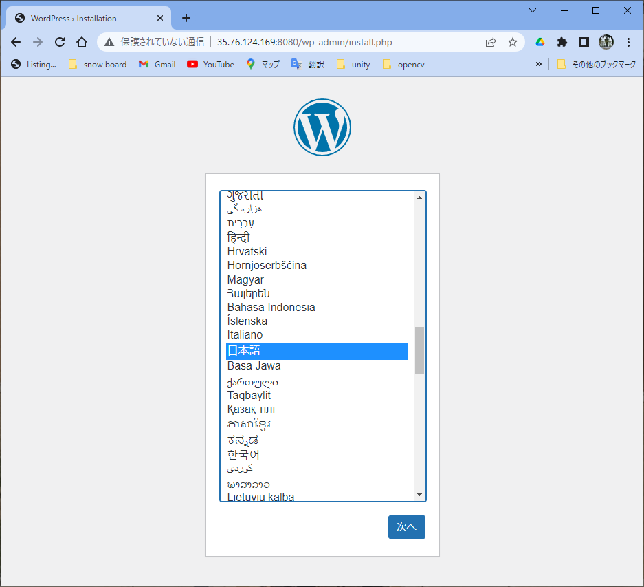 ubuntu@ip-172-30-2-68:~$ docker run --name wordpress_db -dit -v wordpress_db_volume:/var/lib/mysql -e MYSQL_ROOT_PASSWORD=myrootpassword -e MYSQL_DATABASE=wordpressdb -e MYSQL_USER=wordpressuser -e MYSQL_PASSWORD=wordpresspass --net wordpressnet mysql:5.7 be559cba742615cb79e0d06a9c0a33158d53c8b6b35f18c0c202f167e68bd211 ubuntu@ip-172-30-2-68:~$ docker ps CONTAINER ID IMAGE COMMAND CREATED STATUS PORTS NAMES be559cba7426 mysql:5.7 "docker-entrypoint.s…" 4 seconds ago Up 3 seconds 3306/tcp, 33060/tcp wordpress_db ubuntu@ip-172-30-2-68:~$ docker run --name wordpress_app -dit -p 8080:80 -e WORDPRESS_DB_HOST=wordpress_db -e WORDPRESS_DB_NAME=word pressdb -e WORDPRESS_DB_USER=wordpressuser -e WORDPRESS_DB_PASSWORD=wordpresspass --net wordpressnet wordpress ebf1185f0ae11d9075e63598cce5397c400c41a9b6fdcb49b35cec6af1be73d5 ubuntu@ip-172-30-2-68:~$ docker ps CONTAINER ID IMAGE COMMAND CREATED STATUS PORTS NAMES ebf1185f0ae1 wordpress "docker-entrypoint.s…" 13 seconds ago Up 11 seconds 0.0.0.0:8080->80/tcp, :::8080->80/tcp wordpress_app be559cba7426 mysql:5.7 "docker-entrypoint.s…" 6 minutes ago Up 6 minutes 3306/tcp, 33060/tcp wordpress_db