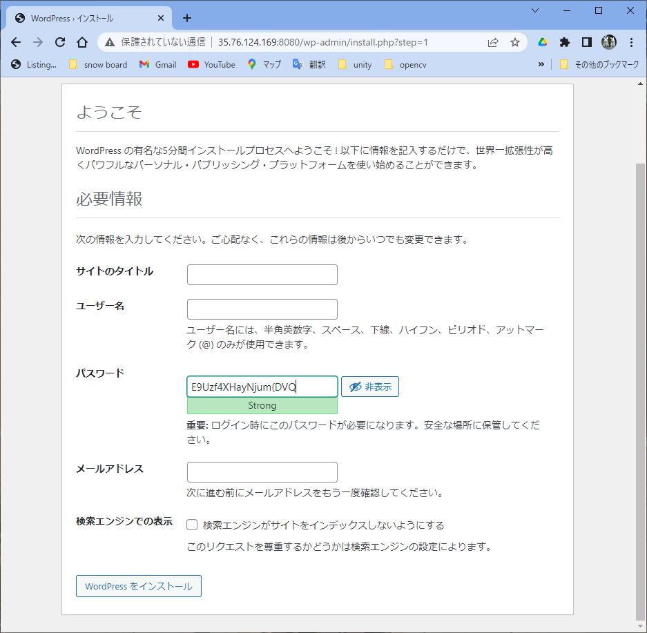 $ cd ~/wordpress $ docker-compose up -d /usr/local/lib/python3.6/dist-packages/paramiko/transport.py:33: CryptographyDeprecationWarning: Python 3.6 is no longer supported by the Python core team. Therefore, support for it is deprecated in cryptography and will be removed in a future release. from cryptography.hazmat.backends import default_backend Creating network "wordpress_wordpressnet" with the default driver Creating volume "wordpress_wordpress_db_volume" with default driver Creating wordpress_wordpress_db_1 ... done Creating wordpress_wordpress_app_1 ... done