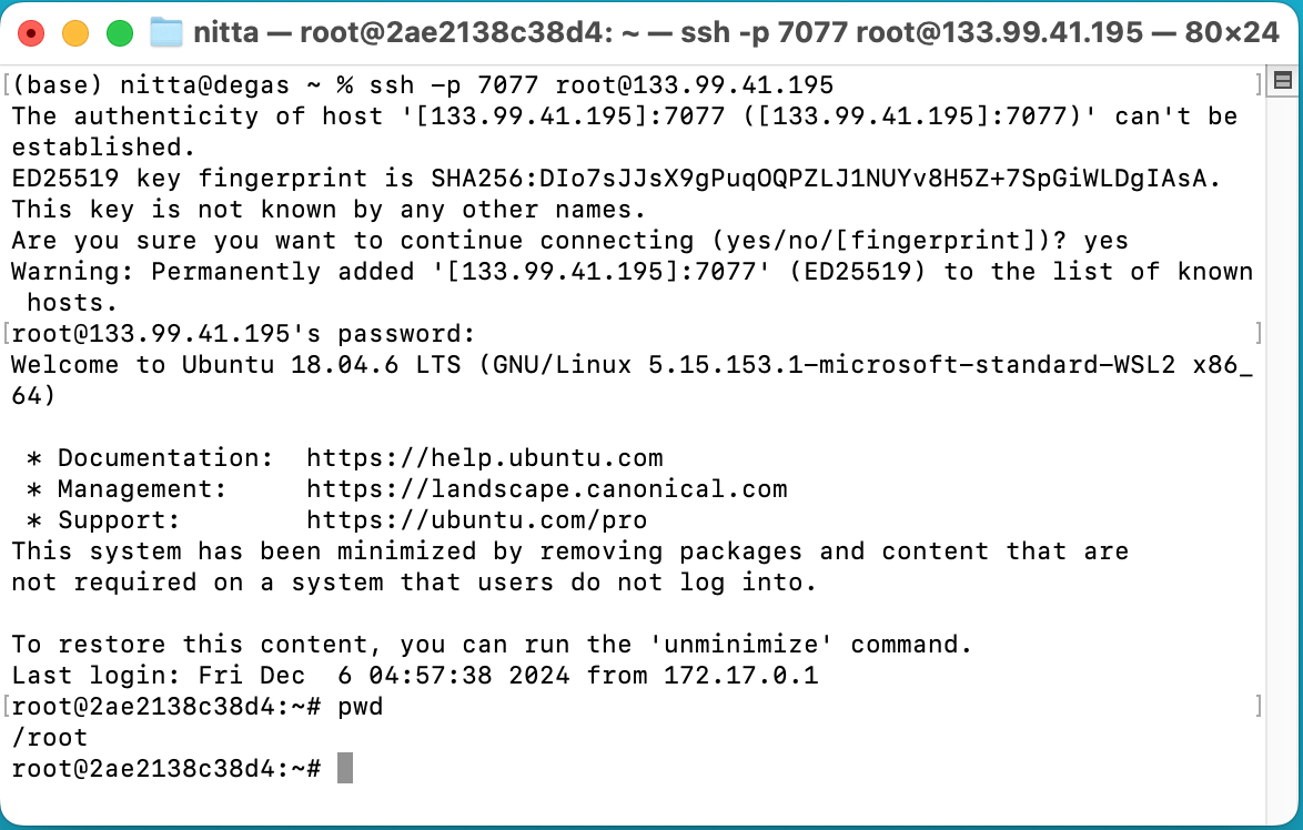 apt-get update apt-get upgrade -y apt-get install -y openssh-server echo 'root:パスワード' | chpasswd sed -i "s/#PermitRootLogin prohibit-password/PermitRootLogin yes/" /etc/ssh/sshd_config service ssh start