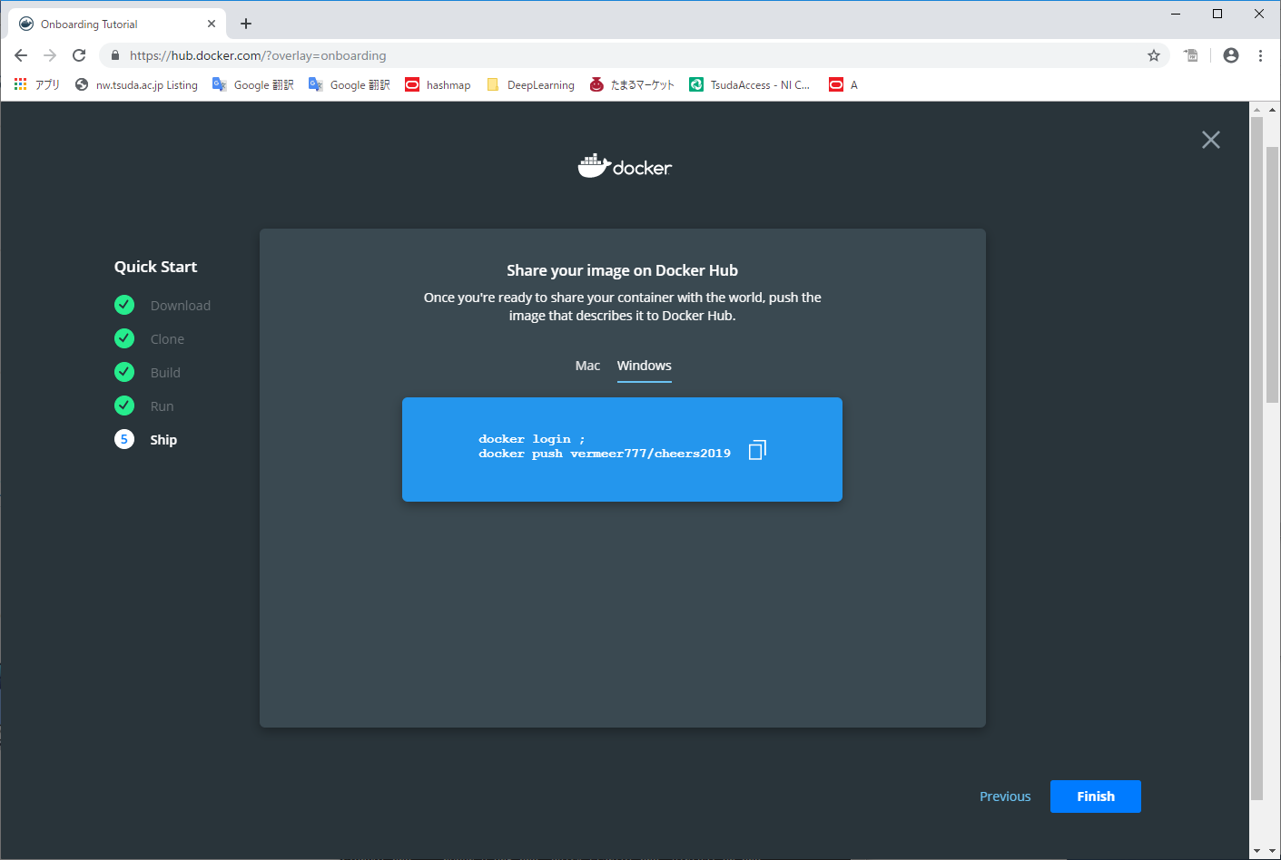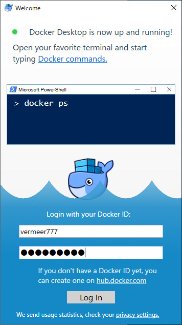 - Docker Desktopが起動中であることを確認する。起動してなければ、起動する。